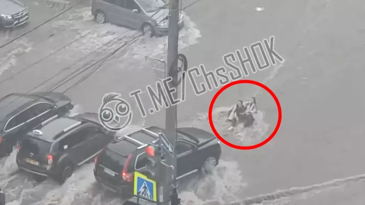 /VIDEO/ Terifiant! Două tinere luate de apă au ajuns sub roțile unei mașini, pe o stradă din Chișinău. Alți locuitori înoată pe drumuri