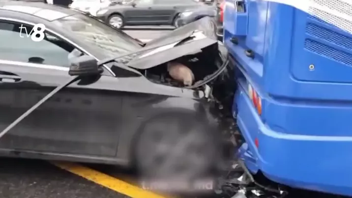 Ghinion matinal pentru un șofer din capitală. Acesta și-a avariat grav Mercedes-ul, după ce a intrat în plin într-un troleibuz, oprit în stație. În momentului impactului, în troleibuz se aflau 40 de pasageri. Nimeni nu a avut de suferit. Momentul accidentului a fost surprinse de o cameră de bord.