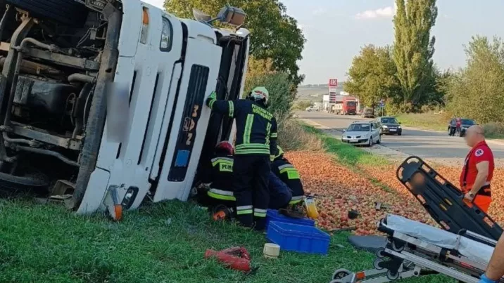 Grav accident în apropierea orașului Orhei. Un camion MAN, încărcat cu aproximativ 15 tone de mere, a ieșit de pe carosabil și s-a răsturnat. În urma accidentului, șoferul, un bărbat de 65 de ani, a rămas blocat în vehicul.