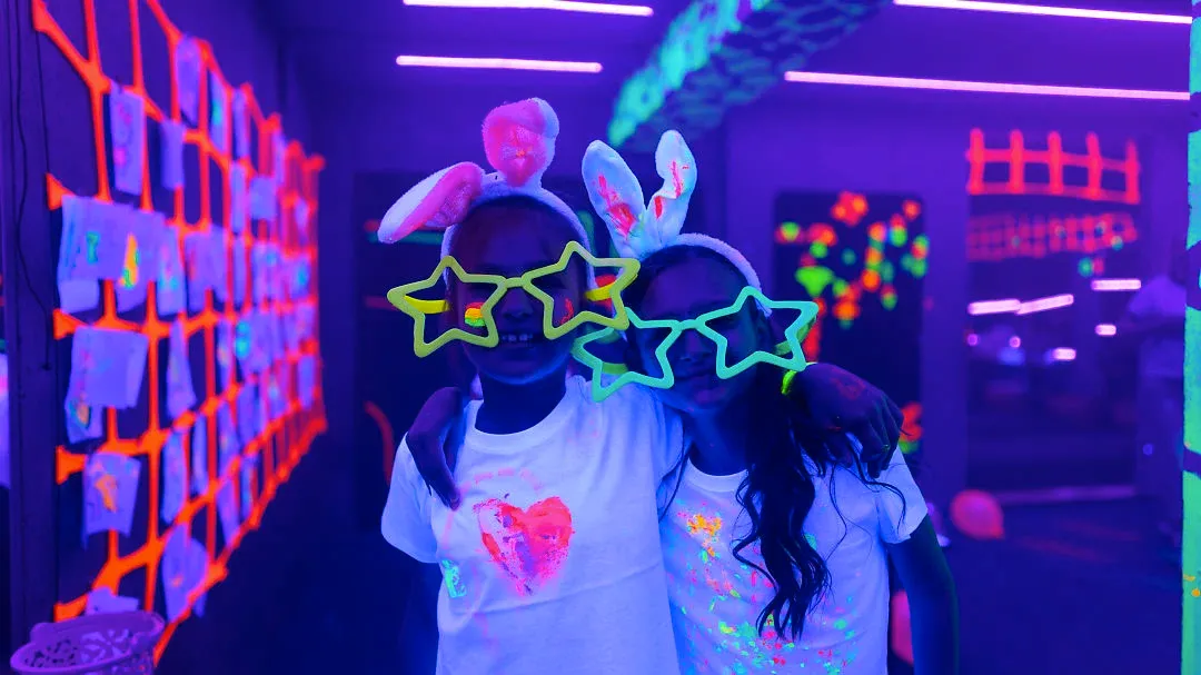 Neon Time este mai mult decât o sărbătoare - este o aventură plină de culori și magie fluorescentă! Copiii vor descoperi minunile vopselelor speciale cu care se pot picta de sine stătător, de la față și corp, până la haine și chiar păr. Fiecare mic artist are la dispoziție vopsele specializate, iar un PICTOR profesionist îi va fi alături pentru inspirație și îndrumare.