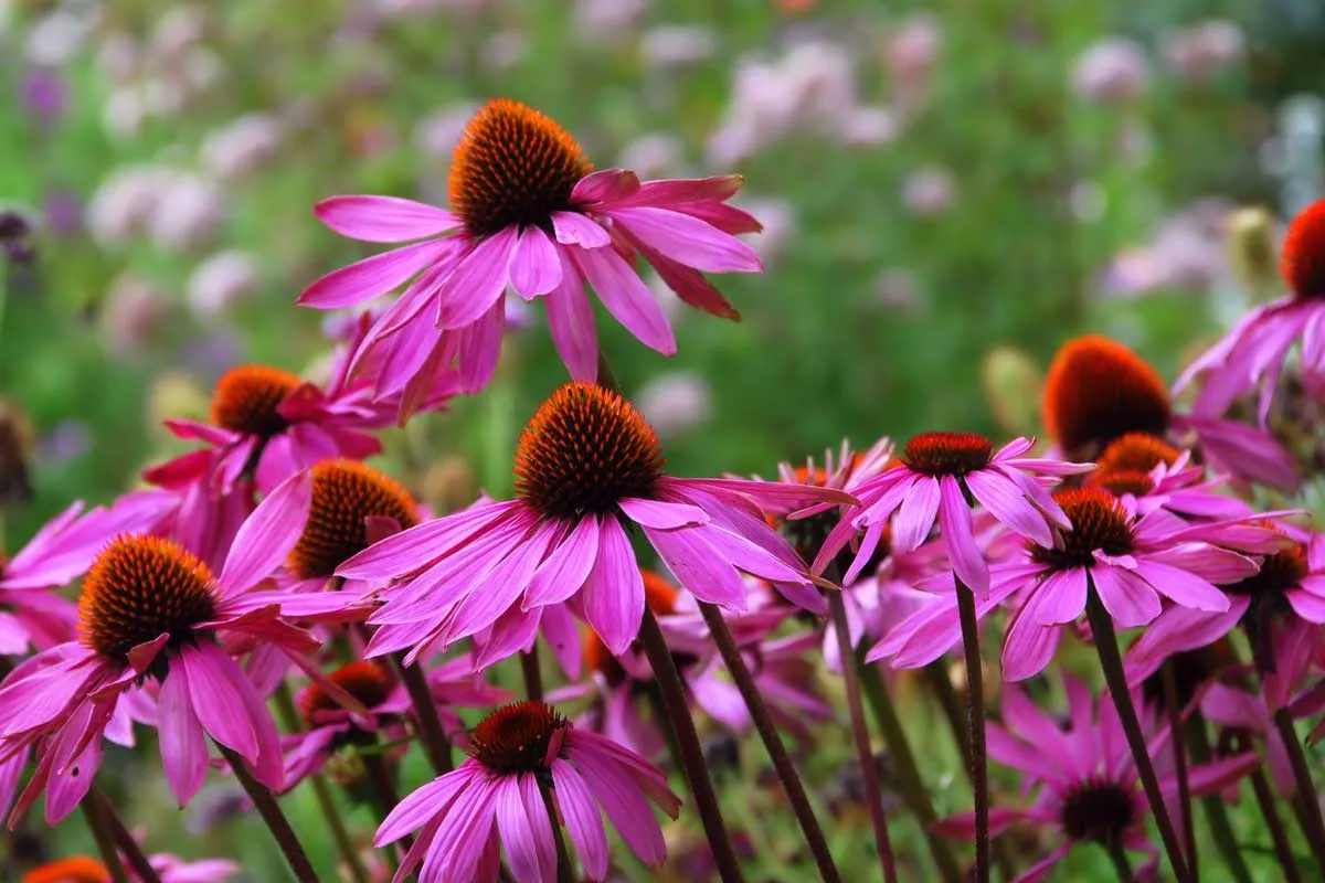 Echinaceea este o plantă perenă cunoscută pentru efectele sale medicinale, dar și pentru florile ei frumoase, care din luna iulie și până toamna târziu se mențin. Florile au petale roz sau purpurii, iar centrul este, de obicei, maro sau portocaliu. Florile seamănă cu margaretele, cu petale care se apleacă ușor în jos, iar centrul conic este foarte atractiv pentru insectele polenizatoare. Preferă soare, zone bine luminate și soluri bine drenate. Este o plantă rezistentă, care poate tolera perioade scurte de secetă.