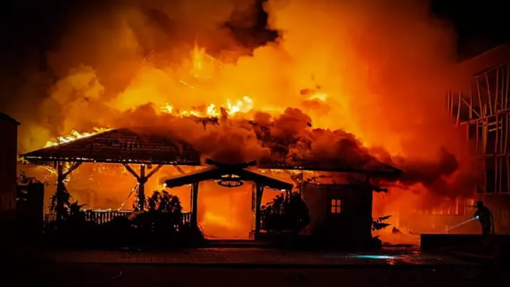 Într-o altă zonă a orașului a ars un complex de restaurante și pavilioane comerciale. Incendiul a fost localizat pe o suprafață de 1.400 de metri pătrați. Lucrările de stingere continuă.