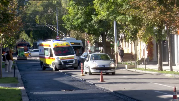 Așa a arătat astăzi strada Pușkin din capitală. Zeci de automobile, dar și troleibuze au stat pe loc minute bune. Totul s-a întâmplat din cauza lucrărilor de reabilitare a unei porțiuni de drum.