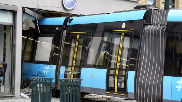 Tramvaiul albastru al societății de transport Sporveien din Oslo a ieșit de pe șine și a intrat într-un magazin de calculatoare aflat la parterul unei clădiri cu patru etaje din centrul capitalei norvegiene.