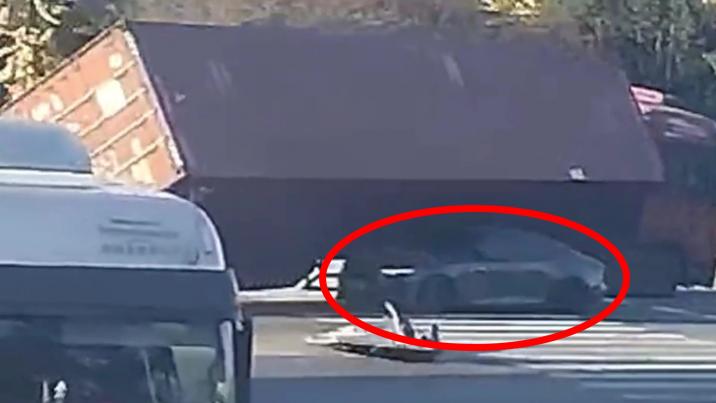 Două persoane au supraviețuit într-un mod miraculos după producerea unui accident în estul Chinei, generat de un camionagiu care a încălcat reguli de circulație. Momentul a fost surprins de o cameră de supraveghere din orașul Suzhou, provincia Jiangsu, pe 1 decembrie. Un container încărcat cu peste 30 de tone de scânduri de lemn a părăsit platforma pe care se afla și s-a răsturnat peste un autoturism.