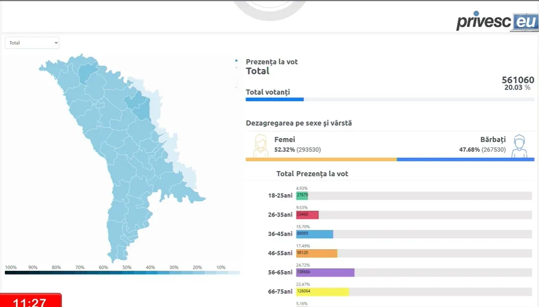 /INFOGRAFIC/ Alegerile pot fi validate: Câți alegători au votat până la ora 11:30, în turul II al prezidențialelor