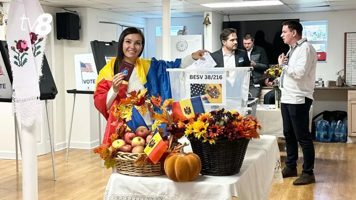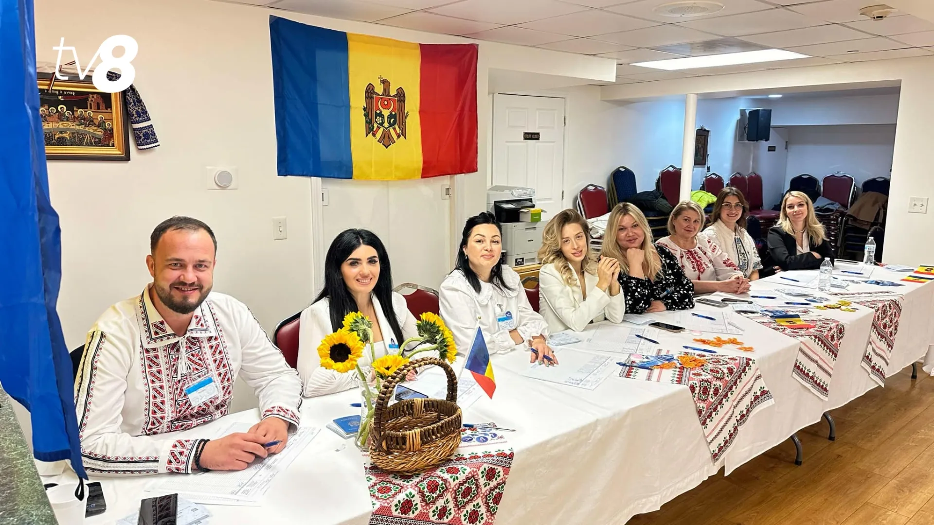 Atmosferă de sărbătoare la secția de votare din Chicago, amplasată în Biserica ortodoxă română Sf. Atanasie cel Mare. Moldovenii au venit în număr mare la votare, cu drapele și în haine tradiționale.