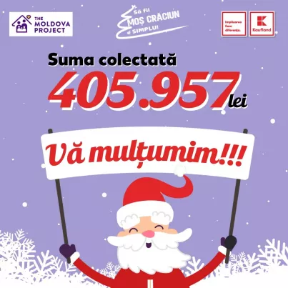 Campania de sensibilizare și de colectare de fonduri SĂ FII MOȘ CRĂCIUN E SIMPLU, ediția a IV-a, a adunat sute de participanți și peste 20 de persoane publice din diverse domenii, care au servit la casele de marcat, în semn de solidaritate pentru acțiunile de sprijin implementate de Asociația The Moldova Project, în beneficiul copiilor din familii defavorizate. Toată suma încasată de invitații speciali, și anume 405.957 de lei , fac posibilă deschiderea unei săli de joacă și lectură într-un sat din Republica Moldova.