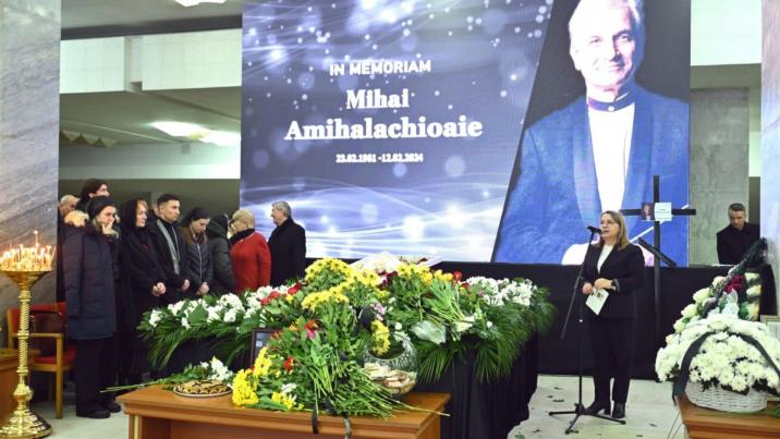 „E foarte greu să găsești acele cuvinte de alinare, de înlocuire a acelui gol imens, pe care ni l-a lăsat Mihai Amihalachioaie. Astăzi ne luăm rămas bun de la un mare artist, de la un om de omenie, blând, bun la suflet, cu mulă dedicație și pasiune, artistul care fiecare notă pe care o dirija sau cânta era plină de inimă, de suflet”, a declarat viceprimarul Angela Cutasevici.