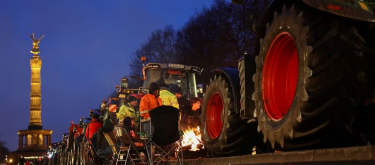Aproximativ 3.000 de tractoare, 2.000 de camioane și 10.000 de persoane erau așteptate să umple luni străzile din jurul Porții Brandenburg din Berlin pentru un miting care va încheia o săptămână de proteste împotriva guvernului.