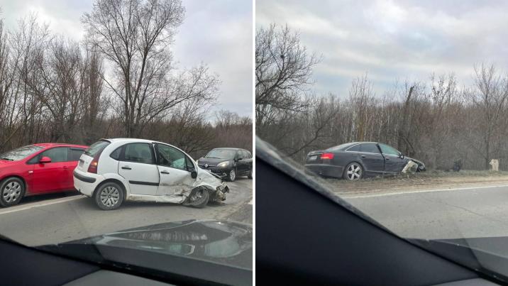 Potrivit poliției, șoferul automobilului de marca Audi nu s-a asigurat înainte de a efectua manevra de depășire și în rezultat, s-a ciocnit cu un Citroen, care se deplasa regulamentar.