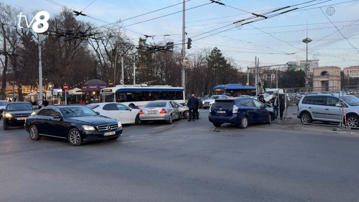 /VIDEO/ Accident cu implicarea a patru mașini în centrul Capitalei: Imagini de la fața locului