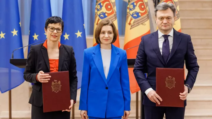 Uniunea Europeană continuă să susțină Republica Moldova în depășirea crizei energetice, oferind un nou pachet financiar destinat atât populației, cât și sectorului economic. Premierul Dorin Recean și comisara europeană pentru Extindere, Marta Kos, au semnat astăzi o scrisoare privind strategia pentru securitatea energetică în următorii doi ani. Ajutorul are drept scop asigurarea stabilă cu gaz și energie, menținerea unor prețuri previzibile și scăparea de șantajul rusesc.