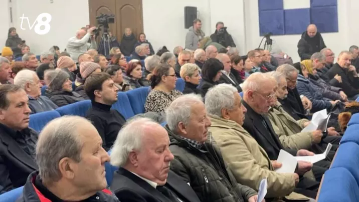 În același timp, în fața Casei de cultură unde a avut loc evenimentul, consilierul bașcanei, Mihail Vlah, a adus organizat mai mulți oameni pentru a urmări discursurile pe un ecran montat pe peretele clădirii.