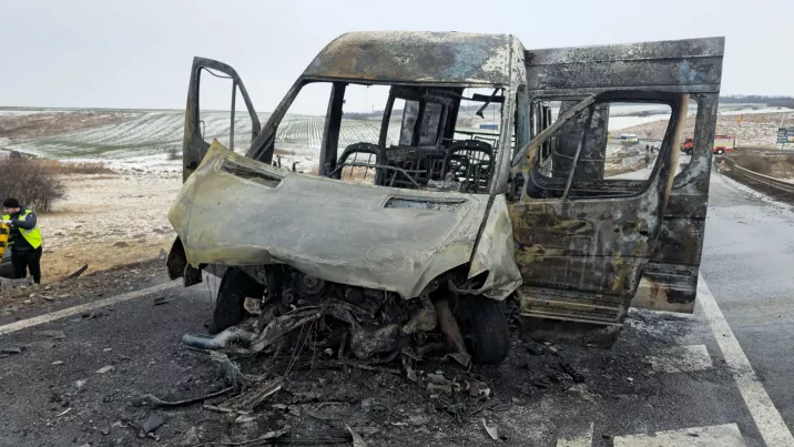 Un microbuz în care se aflau 6 moldoveni a luat foc în România, după ce s-a ciocnit cu un automobil. Accidentul s-a produs în dimineața zilei de 16 februarie, între localitățile Sculeni și Iași.