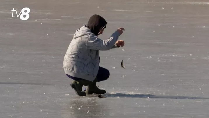 În pofida temperaturilor pozitive și a stratului de gheață mai subțire decât norma, pescarii au continuat să facă găuri una lângă alta în speranța că vor prinde măcar un pește. Aceștia ne-au dat asigurări că știu cum să acționeze în cazul în care gheața crapă.