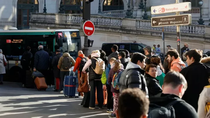După anunțul privind suspendarea serviciilor feroviare, călătorii au fost văzuți stând la cozi însemnate pentru autobuze către aeroportul Charles de Gaulle