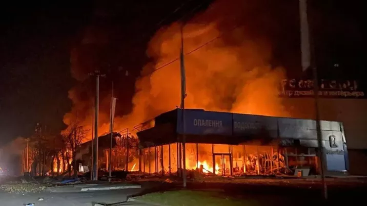 Atacul a avariat infrastructura civilă, lovind un bloc de locuințe, un centru comercial și mai multe magazine. Incendiile au izbucnit în cel puțin trei locații, iar în cartierele Primorski, Peresîp și Kievski au fost raportate întreruperi de electricitate.