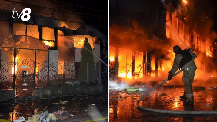 În urma atacului cu bombe ghidate, mai multe automobile și locuințe au luat foc.