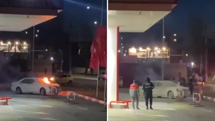 /VIDEO/ Alertă la o benzinărie din Bălți: O mașină a ars ca o torță. Pompierii au intervenit urgent