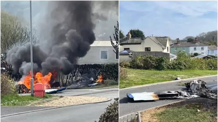 Un avion s-a prăbușit pe o stradă din Marea Britanie: Doi oameni au ieșit singuri din aeronavă