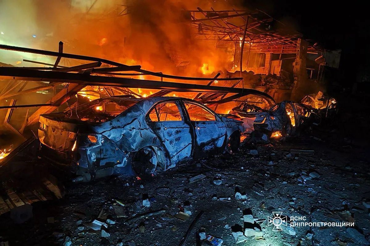 Tot noaptea trecută, Rusia a atacat orașul Kamianske din regiunea Dnipropetrovsk. Două persoane au fost rănite. Totodată, în urma bombardamentelor au izbucnit mai multe incendii pe teritoriul unei întreprinderi private. Au fost avariate 10 vehicule și o conductă de gaz.
