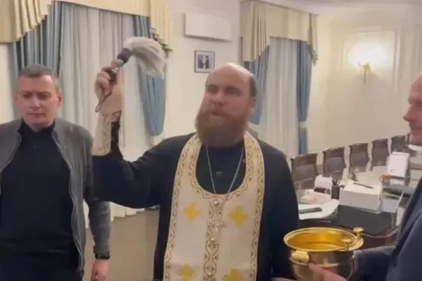 Guvernatorul interimar al regiunii Kursk, Alexander Khinshtein, a invitat un preot ortodox rus să îi binecuvânteze biroul cu apă sfințită, în urma arestării predecesorului său, acuzat de fraudă, mai devreme în cursul acestei săptămâni, scrie vineri publicația independentă The Moscow Times.