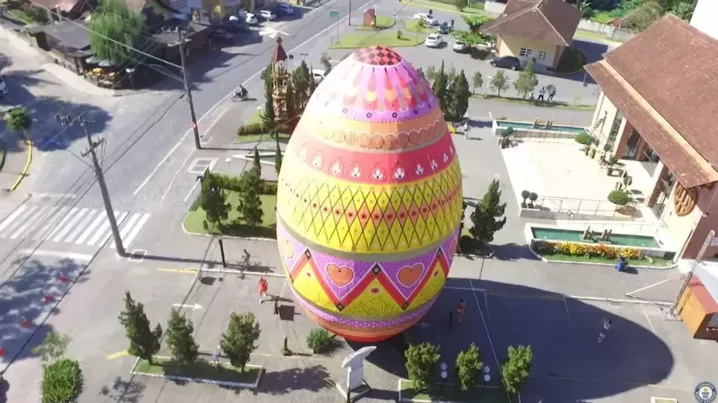 Un ou decorat, cât o casă de mare În orașul brazilian Pomerode, ouăle de Paște nu încap în coș, ci au nevoie de macarale. Localitatea cu rădăcini adânci în cultura germană a intrat în Cartea Recordurilor cu un ou uriaș, înalt de 16 metri și lat de peste 8 metri, adică de mărimea unui bloc cu patru etaje.