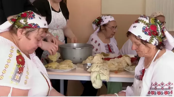„Eu lucrez cam de trei zile, pentru că am pregătit și pentru sarmale. Iată azi de la opt dimineață noi suntem în procesul de muncă, deja când vom finaliza nu știm. Iar mâine deja toată ziua pentru ca să hrănim toate colectivele care o să cânte și toți oaspeții care vor veni la noi”, a spus bucătăreasa, Elena Șuba.