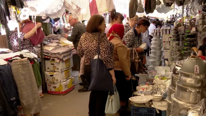 La tarabele cu prosoape și veselă, din piața centrală, au fost cozi astăzi. Ca să nu uite nimic, oamenii au venit cu listele făcute de acasă.