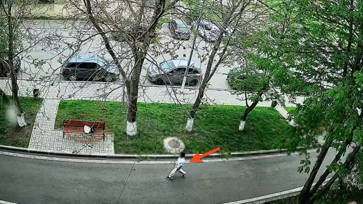 /VIDEO/ Momentul în care o femeie a rămas fără geanta lăsată pe o bancă din fața casei: Doi tineri au fost reținuți