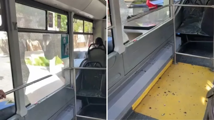 Incident într-un autobuz din Capitală. Pe rețelele de socializare au apărut imagini cu momentul în care un vehicul de pe ruta 39 circulă cu geamul spart, iar cioburile sunt împrăștiate în interiorul salonului.