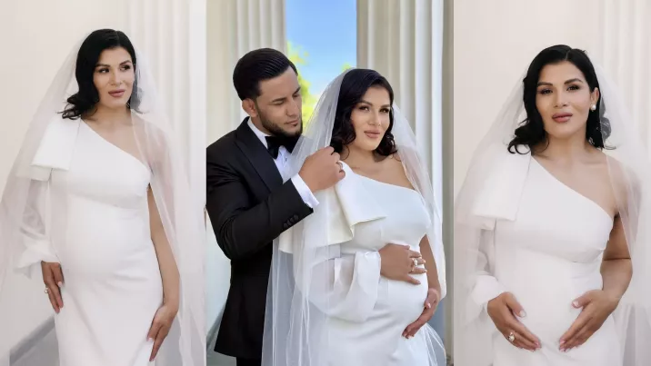 /FOTO/ Fotografii inedite de la cununia Anastasiei Nichita: Sportiva și-a etalat burtica de gravidă într-o rochie cu design asimetric
