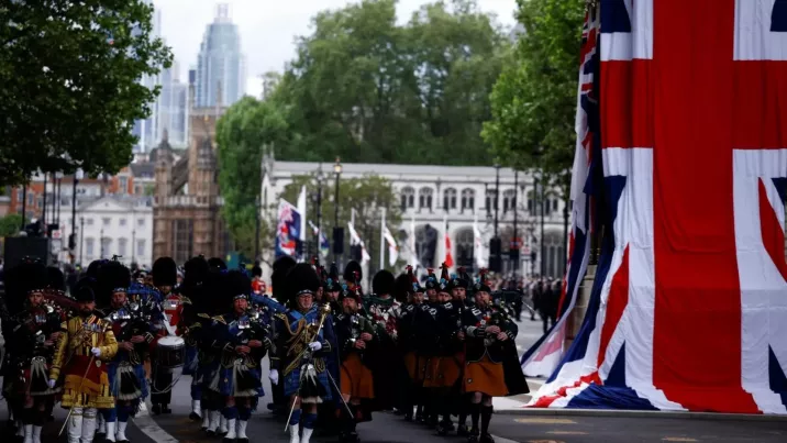Anterior, luni, a avut loc parada militară. La eveniment a asistat și familia regală. Pe cerul capitalei au zburat Red Arrows, avioanele echipei de acrobații aeriene a forțelor aeriene britanice Royal Air Force.