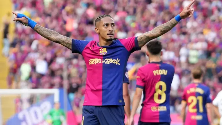 Barca a mai lovit o dată până la pauză, chiar în minutul 45. Raphinha l-a deposedat pe Vazquez, i-a trimis rapid lui Torres, care i-a reîntors balonul brazilianului, iar cel din urmă a marcat.