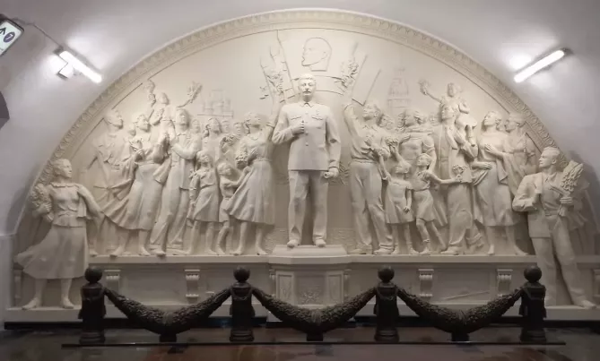 Барельеф находился в торце станции "Таганская" Кольцевой линии метро до 1966 года, но его снесли при строительстве пересадки на Таганско-Краснопресненскую линию. О планах восстановить его по архивным фотографиям и документам власти Москвы сообщили 10 мая.