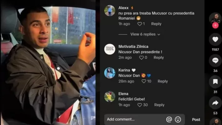 Trapperul Gheboasă anunță, într-o postare pe TikTok, că îl votează pe Nicușor Dan pentru că „e cel mai capabil”: „Celălalt candidat nu prea m-a atins la suflet deloc”, mai spune cântărețul. Gheboasă e și influencer în social media, cu peste 600 de urmăritori și 14,5 milioane de reacții, doar pe TikTok, rețeaua chinezească preferată de adolescenți și tineri, notează G4media.ro