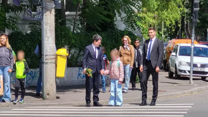 /VIDEO/ Prima zi ca președinte ales: Nicușor Dan, surprins de mână cu fiica spre școală