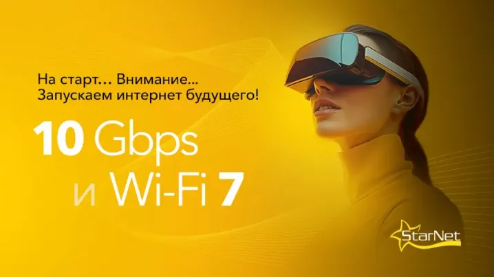 Интернет будущего уже здесь. StarNet представляет технологию, которая меняет всё: скорость до 10 Гбит — это ультрастабильное подключение, ну а Wi-Fi 7 это полное покрытие в каждом уголке дома и стабильность, о которой раньше можно было только мечтать.