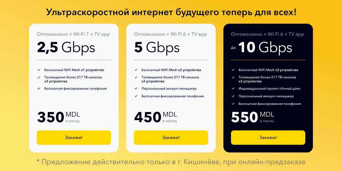 *Система XGS-PON доступна по предзаказу для жителей Кишинёва.
