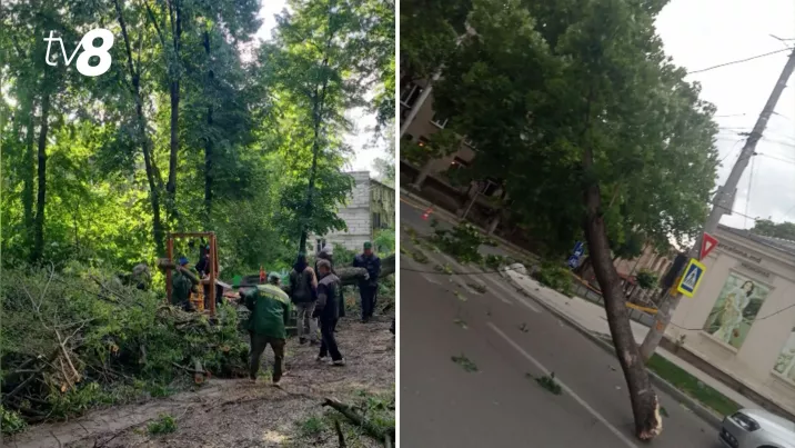 /VIDEO/ Alertă de vreme rea: Vântul puternic a rupt copaci la Chișinău, iar o vamă cu România a fost închisă