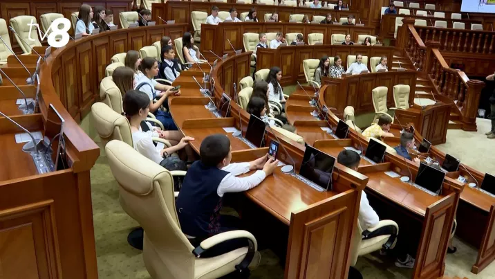 Totodată, cei veniți azi în excursie la parlament au avut parte de un atelier de pictură. Parlamentul Republicii Moldova și-a deschis azi ușile cu ocazia aniversării de 34 de ani.