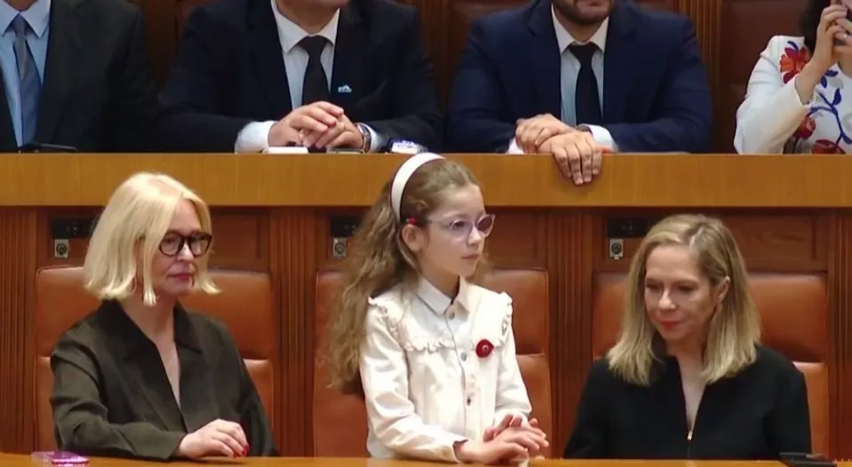 Fiica lui Nicușor Dan, Aheea, a atras toate privirile la ceremonia de învestire a tatălui său. În lipsa mamei, care a rămas acasă cu băiatul Antim, fetiția și-a susținut părintele din sală.