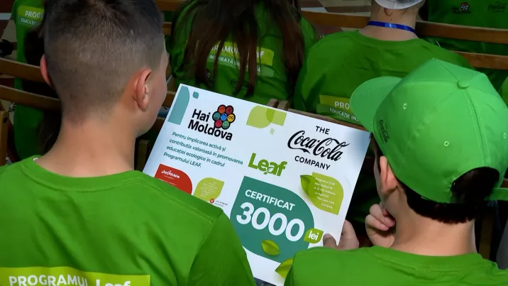 După ce au participat, pe durata întregului an școlar, la Programul LEAF, implementat de asociația obștească Hai Moldova, cu sprijinul The Coca-Cola Company, cei peste 8.000 de elevi din 10 instituții de învățământ din țară s-au reunit la festivitatea de premiere. La Gala LEAF a fost celebrată implicarea, creativitatea și angajamentul tinerilor în protecția mediului.