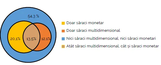 O parte din populație, mai exact 33,6% a fost afectată de sărăcie monetară, în timp ce 25,6% trăia în sărăcie multidimensională. Totuși, cele două forme de sărăcie nu se suprapun complet: 13,5% dintre moldoveni se află în ambele categorii, dar 20,1% sunt doar săraci monetar, iar 12,1% doar săraci multidimensional. Doar 54,3% dintre cetățeni nu sunt afectați de niciuna dintre forme.