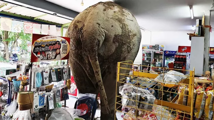 Un elefant flămând a provocat agitație într-un orășel din nord-estul Thailandei. Aflat în căutare de hrană, animalul a decis să intre pe neașteptate într-un magazin alimentar și i-a pus pe fugă pe cumpărători, transmite Observator News.