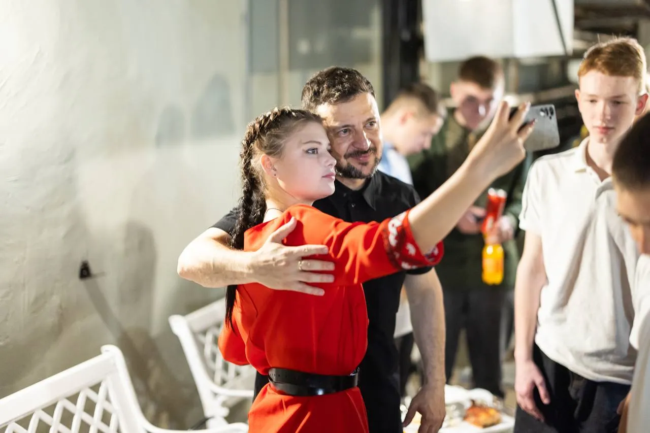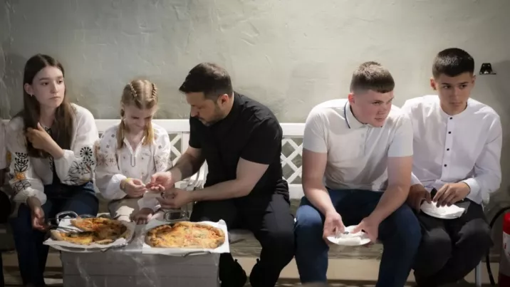 Președintele Ucrainei, Volodimir Zelenski, și Prima Doamnă, Olena Zelenska, s-au întâlnit cu copiii ucraineni și le-au înmânat noua distincție „Viitorul Ucrainei”. Ceremonia a fost întreruptă din cauza unei alerte aeriene, iar festivitatea a fost mutată într-un buncăr. Imaginile surprind liderul de la Kiev mâncând pizza și discutând cu invitații.