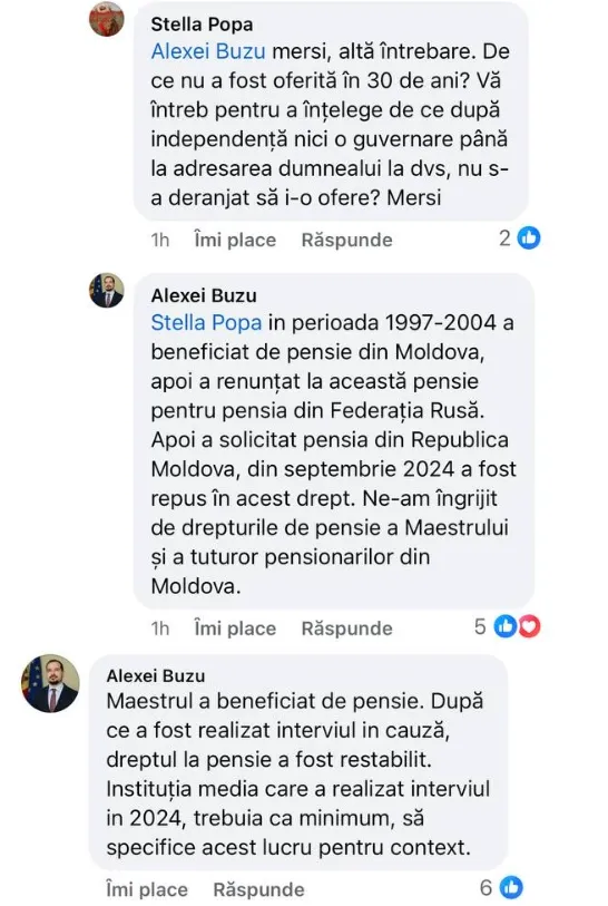 Ministrul Alexei Buzu a intervenit cu o explicație la o postare pe Facebook. Acesta a precizat că compozitorul a beneficiat de pensie în perioada 1997–2004, dar a renunțat ulterior la acest drept în favoarea celei acordate de Federația Rusă: