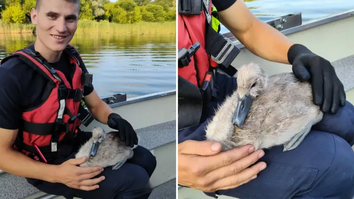 Potrivit unui comunicat al IGSU, două echipe de pompieri și salvatori s-au deplasat de urgență la fața locului. Cu ajutorul unei bărci, aceștia s-au apropiat de pasărea aflată în pericol, și, în scurt timp, au reușit să o elibereze cu grijă. După ce a fost salvat, puiul de lebădă a fost lăsat în libertate.