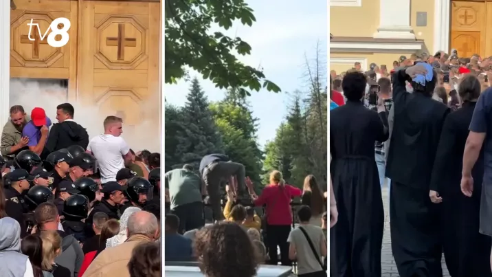 /VIDEO/ Bătaie la o catedrală din Cernăuți: Proteste, preoți agresați, gaze lacrimogene și icoane distruse